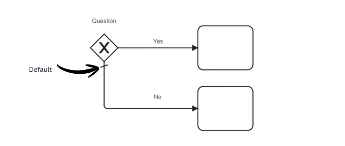 Du erkennst diesen Pfad an einem kleinen Schrägstrich (Slash), der quer durch den Anfang des Pfeils verläuft. Dieser Weg fungiert als "Auffangbecken". Er wird vom Gateway immer dann gewählt, wenn alle anderen spezifischen Bedingungen "Falsch" sind. Er steht sinngemäß für "Ansonsten". Es ist guter Stil, bei XOR-Splits diesen Notausgang zu definieren, um technische Fehler in der Prozessausführung sicher abzufangen.