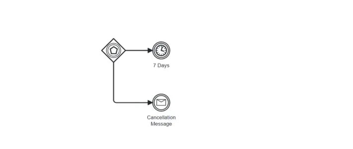 Der Token bleibt im Gateway liegen, bis eines dieser Ereignisse eintritt. Das Ereignis, das zuerst passiert, gewinnt das Rennen. Der Token läuft diesen Weg weiter, und alle anderen wartenden Pfade werden sofort deaktiviert .
